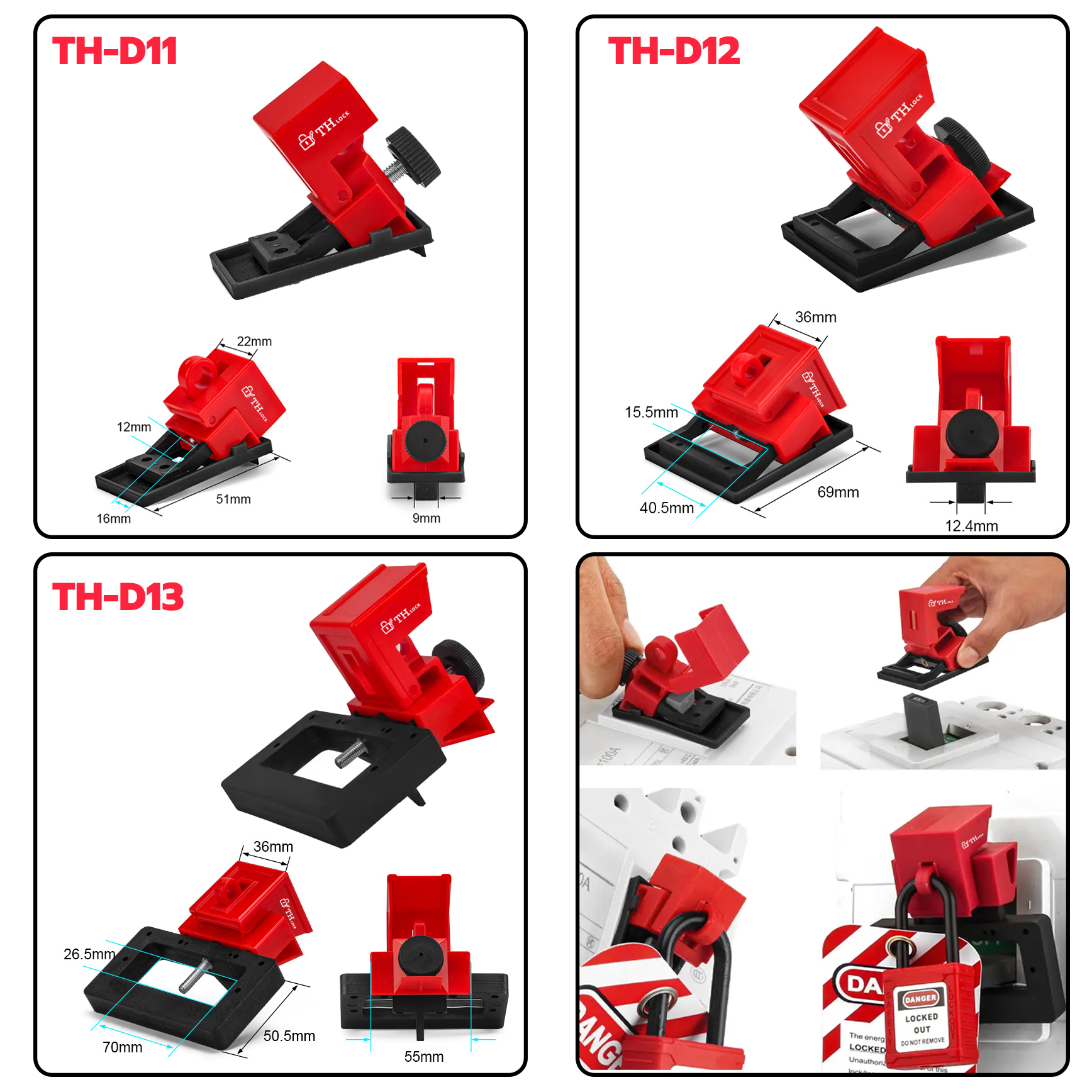 อุปกรณ์ล็อกเบรกเกอร์ลูกย่อย MCB เบรกเกอร์ 1P, 2P และ 3P ออกแบบมาเพื่อล็อกเบรกเกอร์ที่มีขนาดมาตรฐานทั่วไปที่จำหน่ายบนท้องตลาด